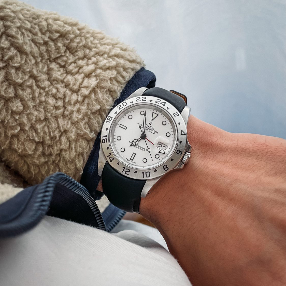 Curved end leather strap for Rolex Explorer 2 ref. 16570